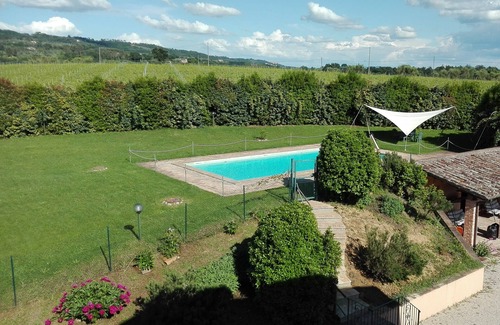 Palazzolo is a farmhouse surrounded by farm vineyards and part of a farm of about 490 acres. It has a private and fenced swimming pool 6x12m in size (i.e. 20x39 feet; the pool is quite deep spanning from about 5 foots to more than 6.5 foots) and a private garden, with a beautiful view on Chiana Valley and Mt. Cetona and on Città della Pieve. Palazzolo is a self-catering unit suitable for families or groups of max. 10-12 people + 2-3 babies willing to combine a relaxing holiday in the countryside with the chance to visit places with archaeological, artistic and natural beauties in Tuscany, Umbria and Latium. Our house can be used as a starting point for daytrips to Florence, Rome, Siena, Cortona, Perugia, Assisi, Orvieto, Chianti, and the Trasimeno Lake area as well as other beautiful destinations (i.e. Mount Amiata). The house combines the comfort of a villa with the rural location of an old farm-house and provides you with plenty of space to live in. The swimming pool is generally open from the first week of June to the last week of September.