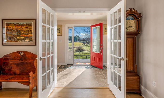 Recently renovated spacious Chester County farm house (horses, vineyards and orchards). Enjoy the experience of a working farm without the work! Situated between West Chester and Lancaster this is the perfect venue to explore all that Chester and Lancaster Counties have to offer. This is a great setting to get away from it all. This is a great destination during September and October during harvest. Kayak on the pond with the swans or pick apples in the orchard in the fall. Walk the trails with your favorite K-9. There is plenty to do without leaving the property. Please note the first floor has a handicap accessible entrance and bedroom on the first floor.