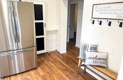 Recently remodeled, 3BR/2BA farmhouse retreat in Thatcher, AZ. Near Eastern Arizona College, park and local attractions. The fully-equipped kitchen, cozy rooms with stylish furnishings, fast WiFi, and foosball table promise both fun and relaxation. This family friendly home has everything you may need including an outdoor deck, firepit and family games in a quiet neighborhood. There are three bedroom in the home: two with queen size beds and one with bunk beds. Extra guests can sleep on a sofa pull out queen size mattress. A full bathroom with tub shower is attached to laundry room and master bedroom has it's own bathroom. A backyard deck and outside fire pit with chairs help you experience a relaxing outdoor retreat. This home is close to Eastern Arizona College with public racquetball courts, tennis court, and swimming pool. Mt. Graham is great for hiking and apple picking at Angle Orchard. Discovery Park and Mount Graham Golf Couse are also nearby. Experience the "small town" feel of farmhouse living with the comfort of modern amenities at this charming retreat!