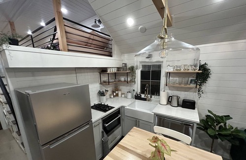 Enjoy life in the country with your own secluded farmhouse styled tiny home. Nestled on 1 1/2 acres inside of a gated private estate, you'll be surrounded by Almond and Walnut orchards just a few minutes walk from the Tuolumne River. This luxury tiny home is fully equipped for your to enjoy a long weekend or longer stay relaxing and enjoying the amazing bird watching this property has to offer. The property also includes a private sports bar and wine cellar that you'll be able to relax in. Although you'll feel like you're in the middle of the countryside, you're actually just minutes from downtown Modesto with it's amazing restaurants and bars. In the warmer months, you'll have access to a private swimming and fishing hole on the Tuolumne River. Come and enjoy your own slice of heaven in the country while being close to all of the modern amenities that Modesto has to offer.