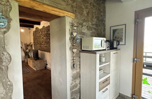 The larger groups will be able to take advantage of the sofa beds as well as the basement: a studio with a kitchenette and a double bed (height of the basement 190 cm). The bathroom in the basement, which has an entrance from the outside, has a large shower and a washing machine.