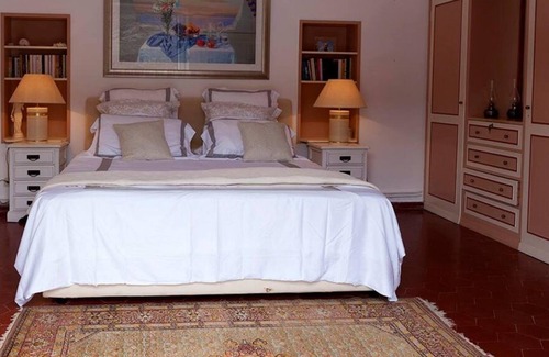 The main residence has five en suite bedrooms, a living area, dining room for eight guests, separate staff room, kitchen, cellar and shower room. One of the bedrooms, atop the flat roof, has its own spacious veranda with pergola.