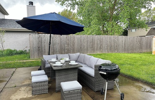 Get away from the hustle-and-bustle of downtown with a suburban escape complete with all the comforts of home and a fun-filled backyard!
