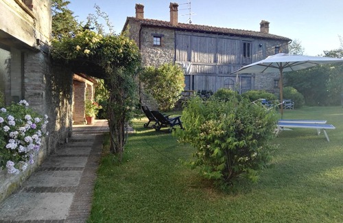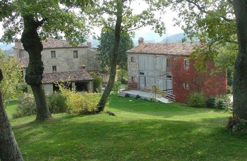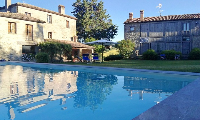 Stone farmhouse furnished with period furniture, in the heart of Montefeltro, between the castles of Urbino, San Leo and San Marino. It offers 6 rooms with private bathrooms, a large living room with fireplace and kitchen, for a total of 12 guests.