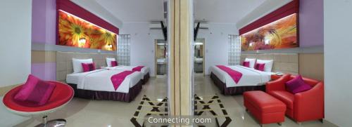 Favehotel Premier is a 15 minute walk from Bandung’s Jalan Cihampelas, which hosts shopping and entertainment options. Offering rooms with free Wi-Fi access, the hotel houses an outdoor pool and a gym. Favehotel Premier Cihampelas is a 30 minute drive from Husein Sastranegara International Airport. Indoor theme park Trans Studio is a 40 minute drive away. Contemporary air-conditioned rooms feature a flat-screen TV with satellite channels and a private bathroom with hot and cold water facilities. The restaurant serves a variety of international dishes, with the possibility of in-room dining. Guests can use the business center, or head to the 24-hour front desk for assistance with currency exchange, laundry or concierge services. Complimentary private parking is available.