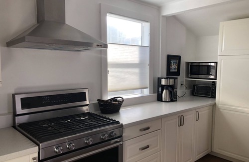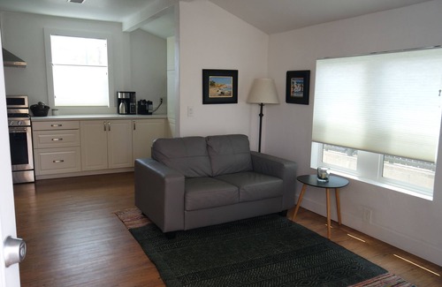 So much close by! This small cottage is located behind an owner-occupied 1920's bungalow in the heart of La Jolla Village. The ocean and local pocket beaches are a 10 minute walk. The local grocery store, fine dining and casual restaurants and movie theater are within a 2 block walk. Bus stop on the closest corner goes to the beach and the center of UCSD campus. Bike rentals are next door. The cottage is located adjacent to 2 schools, so during school hours children's recess and science lessons can be heard. In the evening, it's very quiet and nearby homes are all single story for privacy. Full kitchen and large closets. Please note that the cottage has high speed internet but not cable. There is a smart tv with Apple TV for streaming.