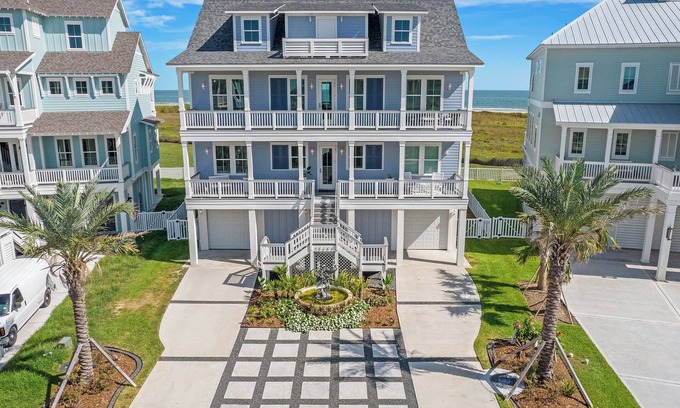Everything's bigger in Texas and that includes this custom built Galveston vacation rental! The 3-story, 5-bedroom, 5 full plus 3 half bath beach house is the perfect setting for family get-togethers and weekend getaways with unobstructed surf-front views from the decks. Featuring flat-screen internet TVs, two pairs of washers and dryers, a fully stocked kitchen and ground-floor food preparation areas, plus a full en-suite bathroom for every bedroom, this home was designed with fun and relaxation in mind. This delightful beach vacation home also has an in house elevator from the ground floor to the second floor and a game room that includes a pool table and classic arcade games.