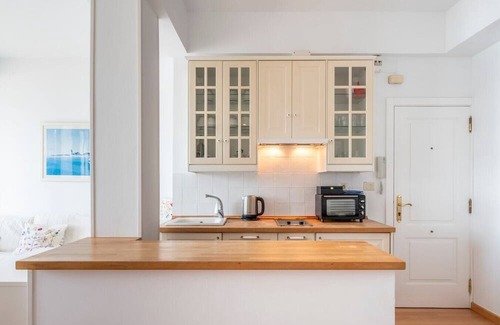 The fully furnished kitchen, equipped with all the necessary amenities, is ready to awaken your inner chef and create delicacies while enjoying the sea views.