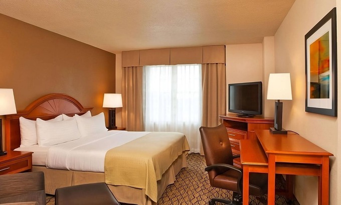 Experience exceptional comfort in well-appointed rooms and suites, complete with complimentary Wi-Fi, flat-screen TVs, and ergonomic workstations. Indulge in on-site dining options or take a dip in the outdoor pool. Maintain your fitness routine at the fully-equipped gym, and make use of the business center and meeting facilities. A complimentary airport shuttle service ensures stress-free travel.