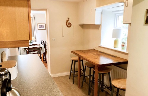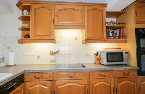 Amenities: Oil central heating and wood-burning stove. Electric double oven and hob, microwave, fridge/freezer, fridge, washing machine, tumble dryer, dishwasher, TV, piano, books, games, and WiFi. Fuel and power inc. in rent. Bed linen and towels inc. in rent. Off-road parking for three cars. Enclosed grounds with raised lawn, patio, hot tub, and seating. Two well-behaved pets welcome. Please note: Minimum stay of 3 nights. Sorry, no smoking. Shop/ garage 2.5 miles, pub 0.2 miles