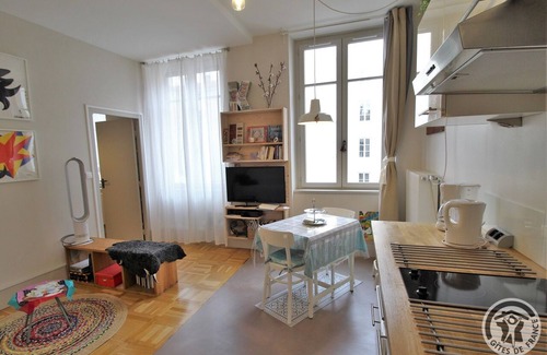 Furnished City Break accommodation on 3rd floor (no lift) of 19th century residence, typical of the district of 'Brotteaux'. Ideally situated, just a few meters from the banks of the Rhône, 5 minutes walk from the Presqu'île. Peaceful, light & confortable interior, totally renovated (polished concrete, parquet floors, wood, charming wall papers, antique furniture, contemporary paintings, modern & functional equipments, Dyson cool fan). Entrance, living room (kitchen, dining, lounge areas with 160cm sofa bed), 1 bedroom (two 80cm beds that can be joined to form double bed), bathroom, separate WC. Bed linen, towels & household linen supplied at no extra charge. Fixed charge for final cleaning : 50 euros (optional). Cot on request. Books, cleaning products & basic condiments are available for guests. Warm reception by owners who are living on lower floor. Bike paths on the banks of the Rhône 30 m away, accommodation labelled 'Accueil Vélo' from Only Lyon. Member of the Charter 'Serenity Only Lyon'. Registration number with City of Lyon : 6938612835413.