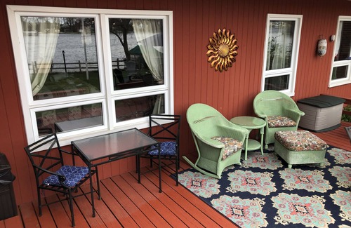 The back deck has a fully equipped propane grill and outdoor furniture, plenty of seating at the table to watch the boating activity on the water. Your very own dock is perfect for swimming, fishing and of course boating! There is a public boat launch to bring your own boat.