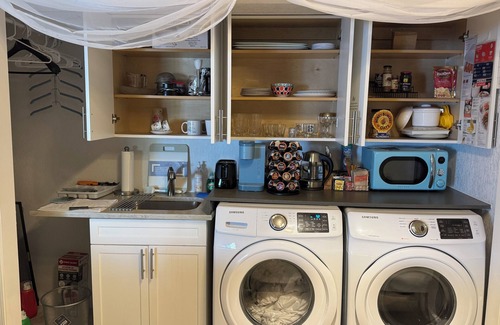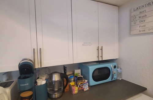 Manual expresso coffee maker , grill next to outside dinning table , fire pit , hammock. Entertain yourself and your guests with full Pool table inside room , 85 inches smart TV , hight speed internet Wi-Fi on a house ,kitchenette and all what you need . Small fridge is outside next to sliding door and room with complimentary provided beverages ,coffee, tea breakfast items , snacks. Gorgeous spacious private bathroom vanity with 2 sinks. Extra towels, lines,blankets in a closet next to bathroom. Shampoo, body wash ,soap provided . Just take your toothbrush and enjoy your stay ! Studio is on a back of the house were quet couple with doggy lives. You don't see them they don't see you . Please park your car as instructed in front white fence gate and your entrance, close your room door when you inside. There a small corridor with closet were you can take extra towels ,beach towels . It is between room and private only for you bathroom it is separated from actuall house . Entry door is private contact less and keys less with new numerick code on a lock will be change and given to you on your check in day . It is clean and neat with everything you need to enjoy your stay.
