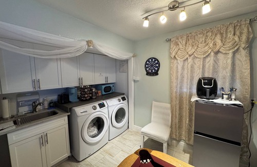 In a room board and floor games, huge 85 inches TV , free Wi-Fi, washer and dryer in a room , kitchenette with everything you need ,microwave/oven with dishes provided , toaster, kettle, coffee maker , in a cabinets plates, glasses ,complimentary free of charge snacks , breakfast items in a mobile fridge. Convenion located off I 95 or turnpike, 2 minutes away to magor plaza Beaches with free parking 10 - 15 minutes away. Juno Beach , Loggerhead beach , ocean reef parks. I provided free of charge beach chairs ,umbrella . PBG downtown, City place,Palm Beach Gardens downtown entertainment and restaurants all around 7minutes away . Perfect for couple or singe travelers, you can have friends over enjoy outside private backyard ,covered patio includes countertop with hot plate/griddle ,small fridge, air fryer, sandwich grill maker,