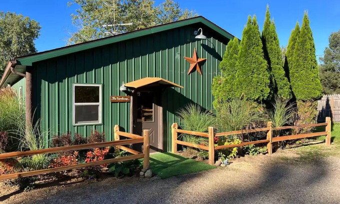 Fennville Michigan Farmhouse, Charming, Dog-Friendly 2-bedroom in Fennville with Wi-Fi, Hot Tub, A/C is located in Fennville. Fennville Michigan Farmhouse, Charming, Dog-Friendly 2-bedroom in Fennville with Wi-Fi, Hot Tub, A/C provides accommodation, featuring Parking, Pet Friendly, Barbecue/Outdoor Cooking, among other amenities. This House features Parking, Pet Friendly, Barbecue/Outdoor Cooking, to make your stay a comfortable one.