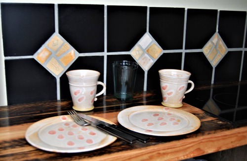 The kitchen is stocked with a refrigerator and an electric kettle. Enjoy the WiFi and TV. Other amenities at this 1-bedroom, 1-bathroom rental include a sofa bed, bed sheets, and heating.