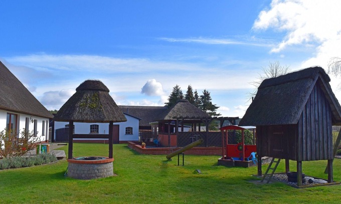 Holiday under a thatched roof! Spend your holiday in Mecklenburg-Western Pomerania close to the Salzhaff lagoon and the inviting beaches of the Baltic Sea! This inviting and spacious holiday apartment offers plenty of space and comfort for up to 6 people and a small child. Your holiday home is located amidst greenery in the Bantow district, which is part of Alt Bukow, on a large and very well-maintained property. Your holiday home boasts 2 bathrooms, 2 bedrooms, and a very spacious kitchen-diner. The fitted kitchen is well-equipped with everything you need to prepare a great meal. A real highlight is the garden, which is partially available to guests. Directly in front of the entrance is a covered seating area with barbecue facilities, a small playground for children, and pets are also welcome. After an eventful day, treat yourself to a delicious grilled steak or enjoy the peace and quiet with a sundowner. Your very accommodating landlords offer you the opportunity to spend an evening by the smokehouse (for a fee). If you bring your own bicycles, you can safely store them in a shed. Highlights included: All consumption-based energy costs, Wi-Fi, 2 free parking spaces Overcrowding with a toddler up to 2 years old is possible Many great day trips can be explored in the surrounding area. Rerik, with its beautiful beaches, is just a short drive away and can also be reached by bike, as are the Salzhaff, Boiensdorfer Werder, and Kühlungsborn. Visit the Hanseatic city of Wismar with its beautiful harbor and brick Gothic architecture. Warnemünde and the Hanseatic city of Rostock are also not far away. From here, you can start a day trip to Denmark with the Scandlines shipping company. Just a short drive away in Neubukow, you will find a wide selection of shops, grocery stores, gas stations, and much more.