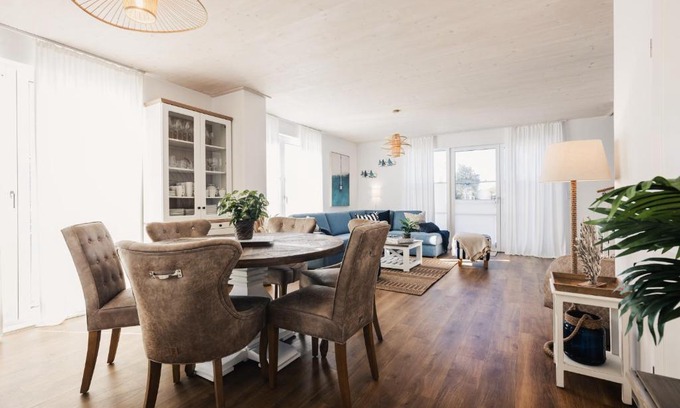 23 miles from Stralsund Central Station in Fuhlendorf, Ferienhäuser Baltic Lagoon Haus 16d offers accommodations with access to a fitness center. Both free Wifi and parking on-site are accessible at the vacation home free of charge. Old Town Hall is 24 miles away and St. Nikolai Church is 24 miles from the vacation home. Offering a terrace and sea views, the vacation home includes 2 bedrooms, a living room, TV, an equipped kitchen, and 2 bathrooms with a shower. Towels and bed linen are offered in the vacation home. The property has an outdoor dining area. Guests can relax in the garden at the property. Theatre Vorpommern is 23 miles from Ferienhäuser Baltic Lagoon Haus 16d, while Stralsund Harbour is 24 miles from the property. Rostock-Laage Airport is 44 miles away.