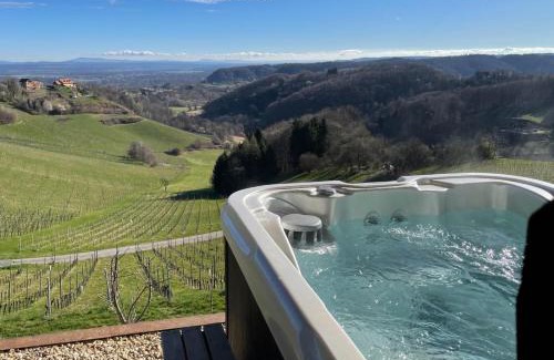 Featuring garden views, Ferienhaus Am Grassnitzberg in Spielfeld provides accommodations, pool with a view, a spa and wellness center, a garden, and barbecue facilities. This property offers access to a balcony, free private parking, and free Wifi. The accommodation features airport transfers, while a bicycle rental service is also available. The vacation home provides guests with a terrace, mountain views, a seating area, satellite flat-screen TV, a fully equipped kitchen with a dishwasher and an oven, and a private bathroom with walk-in shower and a hair dryer. A toaster, a fridge, and stovetop are also available, as well as a coffee machine and a kettle. At the vacation home, each unit includes bed linen and towels. Maribor Train Station is 13 miles from Ferienhaus Am Grassnitzberg.