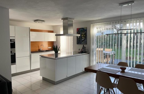19 miles from MesseZentrum Exhibition Center in Mondsee, "Ferienhaus am Mondsee" mit direktem Schafbergblick im Salzkammergut bei Salzburg features accommodations with access to a public bath. This vacation home provides free private parking, bicycle parking, and free Wifi. Guests can use a garden. Providing a terrace and mountain views, the vacation home includes 2 bedrooms, a living room, satellite flat-screen TV, an equipped kitchen, and 1 bathroom with a bath and a shower. Towels and bed linen are featured in the vacation home. The property has an outdoor dining area. Guests at the vacation home will be able to enjoy activities in and around Mondsee, like cycling and hiking. If you like to discover the area, skiing, windsurfing and diving are possible in the surroundings and "Ferienhaus am Mondsee" mit direktem Schafbergblick im Salzkammergut bei Salzburg can arrange a bicycle rental service. Salzburg Central Station is 19 miles from the accommodation, while Mirabell Palace is 20 miles away. Salzburg W. A. Mozart Airport is 24 miles from the property.