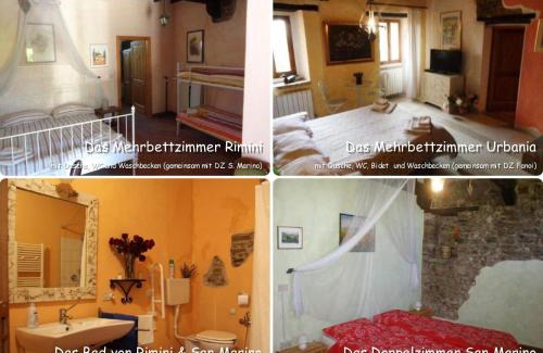 Providing a garden, Ferienhaus Ca Piero mit Pool 17 bis 20 Personen features accommodations in Urbino. This property offers access to a terrace and free private parking. Outdoor seating is also available at the vacation home. With free Wifi, this 7-bedroom vacation home provides a flat-screen TV, a washing machine, and a fully equipped kitchenette with a dishwasher and oven. Towels and bed linen are provided in the vacation home. The accommodation has a fireplace. For guests with children, Ferienhaus Ca Piero mit Pool 17 bis 20 Personen offers an indoor play area and a children's playground. Urbino Cathedral is 17 miles from the accommodation, while Indiana Golf is 30 miles away. Federico Fellini International Airport is 30 miles from the property.