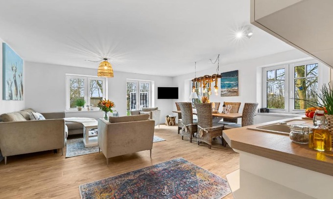 - Flunder- Moderne Ferienwohnung auf 94 m² mit Balkon und Strandkorb