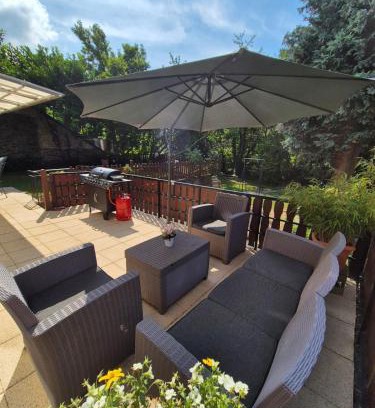 - Holiday apartment with a garden and a parking space
