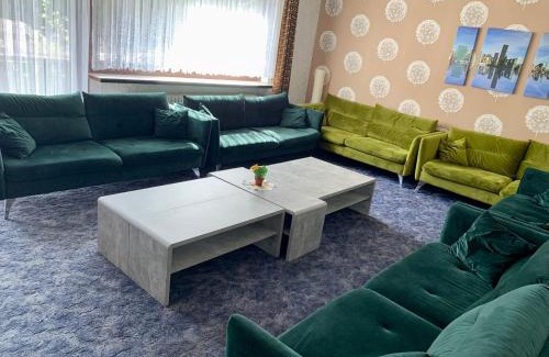 Offering barbecue facilities, Ferienhaus Erika offers accommodations in Zorge. This property offers access to a balcony, free private parking, and free Wifi. On clear days, guests can head outside to enjoy the vacation home's outdoor fireplace or simply kick back and relax. Featuring a terrace and mountain views, the spacious vacation home includes 7 bedrooms, a living room, satellite flat-screen TV, an equipped kitchen, and 4 bathrooms with a bath and a shower. Towels and bed linen are available in the vacation home. For added privacy, the accommodation features a private entrance. For guests with children, the vacation home features outdoor play equipment. A water park and an indoor play area are available at Ferienhaus Erika, while guests can also relax in the garden. Harz National Park is 11 miles from the accommodation, while Bad Harzburg Train Station is 23 miles from the property. Erfurt-Weimar Airport is 62 miles away.