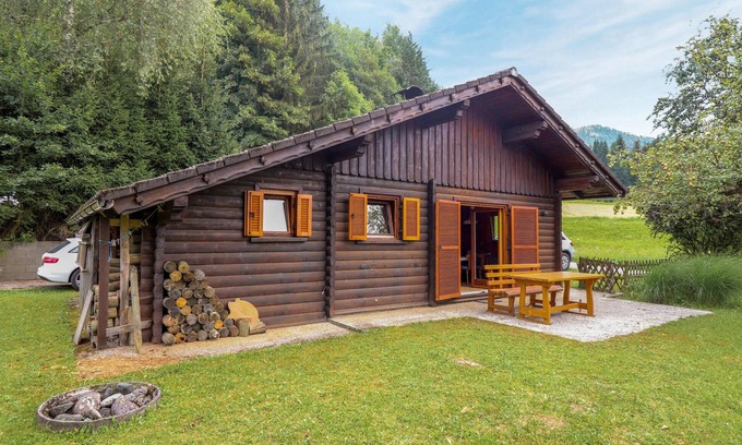 This cosy log cabin is located between meadows and forests in the small village of Sagerberg in Carinthia, Austria's southernmost province. The holiday home offers simple but cosy accommodation in a quiet location and is ideal for guests looking for a break close to nature. Pets are also very welcome, so you can enjoy your holiday together with your four-legged friends. The house features rustic furnishings with lots of wood and a cosy atmosphere. The living room is equipped with a seating area and a wood-burning stove, which provides cosy warmth, especially on cooler days. Firewood is provided on site.