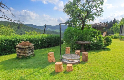 This "servant apartment" is located in a separate building on the grounds of a large farm at 750 m above sea level in a beautiful sunny location. The farm offers a lot of variety - especially for children. Up to 2 pets may be brought along free of charge - so nothing stands in the way of your vacation with dog in Carinthia! Around the farm is a wooded, sparsely populated area with beautiful hiking opportunities between 630 and 2,040 m above sea level. Numerous alpine huts and mountain inns invite you to stop for a bite to eat. Sights (Hochosterwitz Castle), castles and swimming lakes can be reached within a radius of 30 kilometers. Only 500 m (10 minutes walk) away is the terrace swimming pool Klein St. Paul.