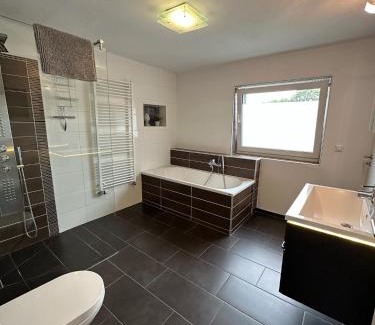 Ferienhaus Reimerdeskamp 41 offers accommodations in Hameln, 1.5 miles from Museum Hameln and 2 miles from Hameln Central Station. Providing a garden, the property is located within 1.2 miles of Theatre Hameln. Free Wifi is available throughout the property and Weser Uplands – Center is 1.3 miles away. Offering a terrace with garden views, this vacation home also has a satellite flat-screen TV, a well-equipped kitchen with a dishwasher, an oven, and a microwave, as well as 1 bathroom with a walk-in shower and a hair dryer. For added privacy, the accommodation has a private entrance and soundproofing. Rattenfaenger Hall is 2 miles from the vacation home, while Train Station Detmold is 29 miles away. Hannover Airport is 38 miles from the property.