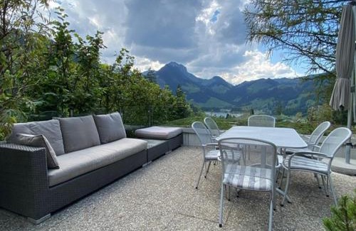 - Sunny chalet vacation apartment with a view of the Jaun valley in the west alps