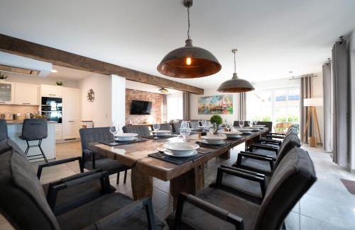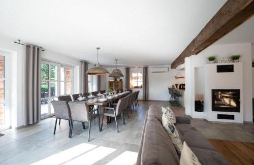 7.2 miles from Marina Kühlungsborn in Rerik, Ferienhaus "Stangenberg Perle" features accommodations with access to a sauna. The vacation home, set in a building dating from 2022, offers free Wifi and free private parking. Neue Messe Rostock is 20 miles from the vacation home and Wismar Central Station is 20 miles away. Opening onto a terrace with garden views, the spacious vacation home consists of 8 bedrooms. The air-conditioned vacation home also provides a TV, a fully equipped kitchen with a dishwasher, a seating area, washing machine, and 5 bathrooms with a bidet, a bath, and a shower. The property has an outdoor dining area. Guests can also relax in the garden. Zoo Rostock is 20 miles from the vacation home, while Volkstheater Rostock is 21 miles away. Rostock-Laage Airport is 45 miles from the property.