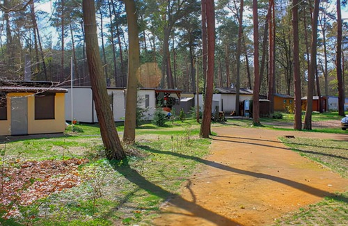 The simple summer bungalow is located on a separate, fenced recreational property in a large holiday estate in a direct forest location, only approx. 150 m from the beach. Equipped with living room (sofa bed, TV, radio), bedroom (double bed), kitchenette incl. microwave, shower/WC, electric heating. There is a furnished terrace, sun loungers and a dog kennel. Terrace, sun loungers, dog kennel and car parking space. Children's playground on the beach. Included in the total price: Final cleaning, water and energy consumption. Bed linen/towels can be brought or rented.