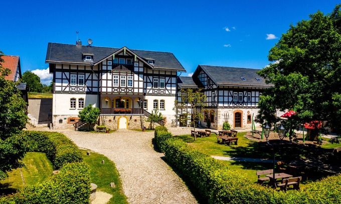 Ferienhof Domäne Groschwitz offers a stunning setting for your wedding stay, combining charm and convenience in Rudolstadt. This idyllic bed & breakfast provides everything you need to make your special day unforgettable.