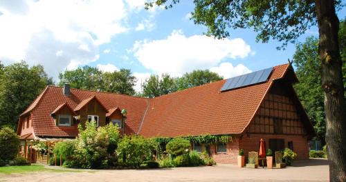 Featuring inner courtyard views, Ferienhof Tödter in Schneverdingen provides accommodations and barbecue facilities. Providing free private parking, the 3-star apartment is 16 miles from Theme Museum Heide. Featuring a private entrance, the apartment allows guests their privacy. The apartment provides guests with a terrace, garden views, a seating area, satellite flat-screen TV, a fully equipped kitchen with an oven and a toaster, and a private bathroom with shower and a hair dryer. A fridge and stovetop are also featured, as well as a coffee machine and a kettle. The rooms are equipped with heating facilities. Outdoor play equipment is also available at Ferienhof Tödter, while guests can also relax in the garden. Heide Park Resort is 16 miles from the accommodation, while German Tank Museum is 26 miles away. The nearest airport is Hamburg Finkenwerder Airport, 31 miles from Ferienhof Tödter.