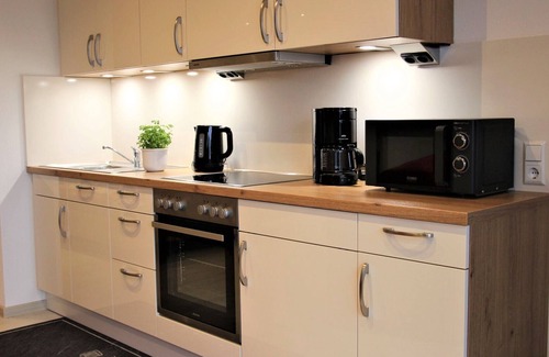 Die Wohnung verfügt über 46qm Wohnfläche und besitzt einen eigenen Eingang mit Garderobe. Am lichtdurchfluteten Wohnraum grenzt das Schlafzimmer mit Doppelbett und Kleiderschrank an. Hier können zwei Personen übernachten. Zwei weitere Personen finden zusätzlich Platz auf einer Schlafcouch. Die Küche ist ausgestattet mit Cerankochfeld und Backofen, Kühlschrank, Spülmaschine, Wasserkocher, Kaffeemaschine, Mikrowelle. Bettwäsche und Handtücher sind vorhanden. Die Wohnung bietet unseren Gästen eine gehobene Ausstattung (Fußbodenheizung, elektrische Rollläden, Flachbild-TV, WLAN etc.). das Badezimmer ist mit Dusche, WC und Fön ausgestattet. Haustiere sind leider nicht erlaubt. Bitte beachten Sie, dass es sich hier um eine Nichtraucherwohnung handelt.