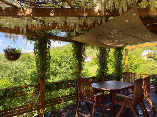 Ferienwohnung an den Grundwiesen offers accommodations in Jena, 6.3 miles from University of Jena and 6.4 miles from Schiller's Garden House. This property offers access to a patio, free private parking, and free Wifi. Outdoor seating is also available at the apartment. Providing a terrace and mountain views, the apartment includes 1 bedroom, a living room, flat-screen TV, an equipped kitchen, and 1 bathroom with a bath and a shower. Towels and bed linen are provided in the apartment. For added privacy, the accommodation has a private entrance and soundproofing. Guests at Ferienwohnung an den Grundwiesen will be able to enjoy activities in and around Jena, like cycling and hiking. Theaterhaus Jena is 6.4 miles from the accommodation, while JenTower is 6.5 miles away. Erfurt-Weimar Airport is 35 miles from the property.