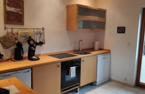 The kitchen is equipped with an oven, a stovetop, and a refrigerator, as well as a coffee maker. And you can even travel light because you'll have access to laundry facilities. Other amenities include a sofa bed, bed sheets, and heating.