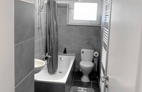 The kitchen is equipped with an oven, a stovetop, and a refrigerator, as well as a coffee maker, a microwave, and a toaster. Enjoy the internet and TV. Bathroom amenities include a hair dryer and towels. And you won't have to pack extra clothes, because you'll also have a washing machine. Other amenities at this 2-bedroom, 1-bathroom rental include bed sheets and heating.