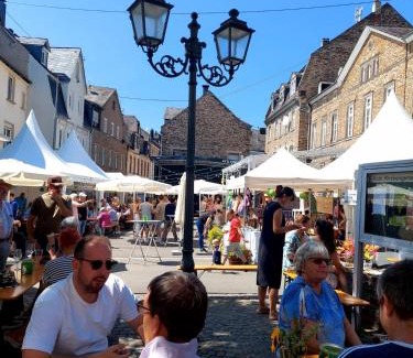 16 miles from Cochem Castle in Zell an der Mosel, Ferienwohnung Beim alten Pfarrhaus provides accommodations with access to a sauna. This property offers access to a patio, table tennis, free private parking, and free Wifi. Providing a terrace and river views, the spacious apartment includes 2 bedrooms, a living room, flat-screen TV, an equipped kitchen, and 1 bathroom with a walk-in shower. Towels and bed linen are provided in the apartment. The property has an outdoor dining area. For guests with children, the apartment features outdoor play equipment. Cycling can be enjoyed nearby. Castle Eltz is 27 miles from Ferienwohnung Beim alten Pfarrhaus. Frankfurt-Hahn Airport is 11 miles away.