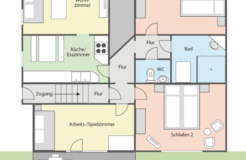 - 60qm-große Ferienwohnung für bis zu 5 Personen