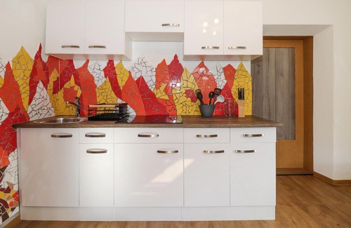 Spend a relaxing vacation as a couple or small family in this friendly and lovingly designed vacation apartment. Classic wooden furniture and decorative tiled elements in the kitchen give the apartment a homely ambience that you can use for relaxing, cooking together and having fun at the dining table. Take a bubble bath after your activities and enjoy your morning coffee on the covered terrace in summer.