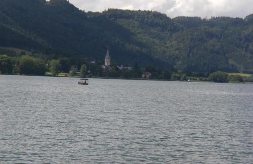 Featuring lake views, a private beach area, and free Wifi, Ferienwohnung Landhaus Sorli is located in Bodensdorf, 7.5 miles from Fortress Landskron and 15 miles from Waldseilpark - Taborhöhe. With free private parking, the property is 17 miles from Hornstein Castle and 18 miles from Pitzelstätten Castle. The apartment features garden views and a terrace. The apartment provides guests with a balcony, mountain views, a seating area, satellite flat-screen TV, a fully equipped kitchen with a dishwasher and a microwave, and a private bathroom with shower and a hair dryer. A toaster, a fridge, and stovetop are also available, as well as a coffee machine and a kettle. At the apartment complex, every unit comes with bed linen and towels. For those times when you'd rather not eat out, you can cook on the barbecue. Guests at Ferienwohnung Landhaus Sorli can enjoy hiking nearby, or make the most of the garden. Schrottenburg is 19 miles from the accommodation, while Drasing Castle is 19 miles from the property. Klagenfurt Airport is 22 miles away.