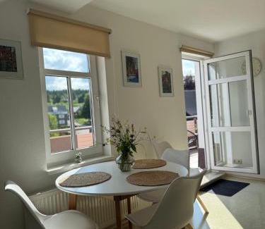 Featuring a garden, Ferienwohnung Schneekopf Zum Prinzenweg provides accommodations in Oberhof. This property offers access to a balcony, free private parking, and free Wifi. On clear days, guests can head outside to enjoy the apartment's outdoor fireplace or simply kick back and relax. Providing a terrace and mountain views, the apartment includes 1 bedroom, a living room, cable flat-screen TV, an equipped kitchen, and 1 bathroom with a bath and a shower. Towels and bed linen are provided in the apartment. This apartment is allergy-free and non-smoking. Guests can make the most of the warm weather with the property's barbecue facilities. Skiing and cycling can be enjoyed nearby, while ski-to-door access and ski storage space are also available on-site. Train Station Suhl is 10 miles from the apartment, while Suhl City Center is 11 miles away. Erfurt-Weimar Airport is 35 miles from the property.