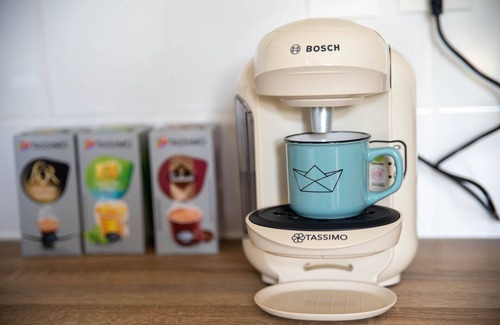 The kitchen is equipped with an oven, a stovetop, and a refrigerator, as well as a coffee maker, an electric kettle, and a microwave. And you won't have to pack extra clothes, because you'll also have access to laundry facilities. Other amenities include heating and a dining table.