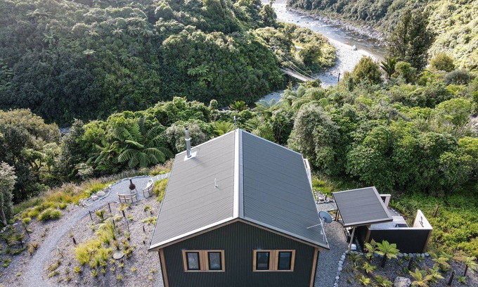 The cabin is off grid and totally relies on solar power ,it features an open plan kitchen and lounge which opens up to the large deck with views over the river. There is one queen bedroom and a bunk bedroom which sleeps 2. You can step outside to a BBQ area and outdoor bathtub.There is limited cell phone coverage for Spark and 2degrees customers.