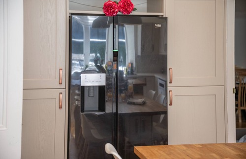 Amenities: Oil central heating. 3 x electric oven, induction hob, 2 x fridge, 2 x freezer, 2 x dishwasher, kettles, toaster. 2 x Smart TVs (you will need your own log-ins for the Apps). One room also has it’s own TV with terrestrial channels. WiFi is available throughout the property. Fuel and power inc. in rent. Bed linen and towels inc. in rent. Off-road parking for 8 cars. Electric Vehicle Charging will be operational mid-August 2025 onwards. Enclosed rear garden with lawn, furniture and hot tub. Side gravelled area with picnic bench. Two well-behaved dogs welcome. Sorry, no smoking. Shop 0.3 miles, pub 0.2 miles. Note: The second floor has sloped ceilings, please take care. Note: Catering service and activities can be arranged by prior arrangement with owner. Note: Front door is not in use (access is via side door on the drive).Note: Sorry, no stag or hen parties. Note: If we haven't received your preferred bed configuration 2 weeks before your stay, beds will be made into the standard configurations (5 x super King and 5 x twins). Note: Hot tub hours between 9am-9.30pm only please. Note: If booking over Christmas or New Year, please note that this property won’t allow check-outs on the 26th Dec or 1st Jan. Note: There is a Good Housekeeping Bond of £1000 for the property