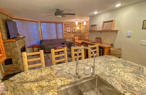 This ski-in luxury condo with high-end log furniture and incredible mountain views awaits a couple or two, or a family. The master bedroom has a king-size bed, work table, the ensuite bathroom with a large stunning shower. The 2nd bedroom suite has two queen beds (queen over queen bund beds), luxury bathroom, TV, couch, microwave, small fridge, & table. The 1st-floor level allows entry and exits directly to the well-maintained grounds, shared hot tub & BBQ, world-class mountain biking, fishing, and skiing. Fernie has the MOST SNOW IN CANADA. Located in the Pine lodge building on the Fernie ski hill, this luxury condo features an open concept kitchen and living area, a ground floor patio with a door that you can use to access the condo. You can enjoy the beautiful mountain views while having your morning coffee or when coming back from your favorite activities. It has two bedrooms (one king size and two queen beds) and each one has its own ensuite bathroom.