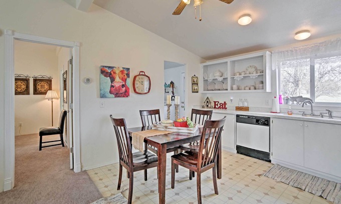 Explore the diverse landscape of the Manti-LaSal National Forest from this 3-bedroom, 1.5-bath vacation rental house in Ferron, Utah. Nestled on a quiet street surrounded by scenic farmland and mountain views, this home offers a serene escape for a group of 9. The property is just a short drive from golfing, fishing, and boating, and a short ATV ride away from the beautiful San Rafael Desert and the majestic Manti-LaSal Mountains, making this an ideal retreat for outdoor adventure seekers!